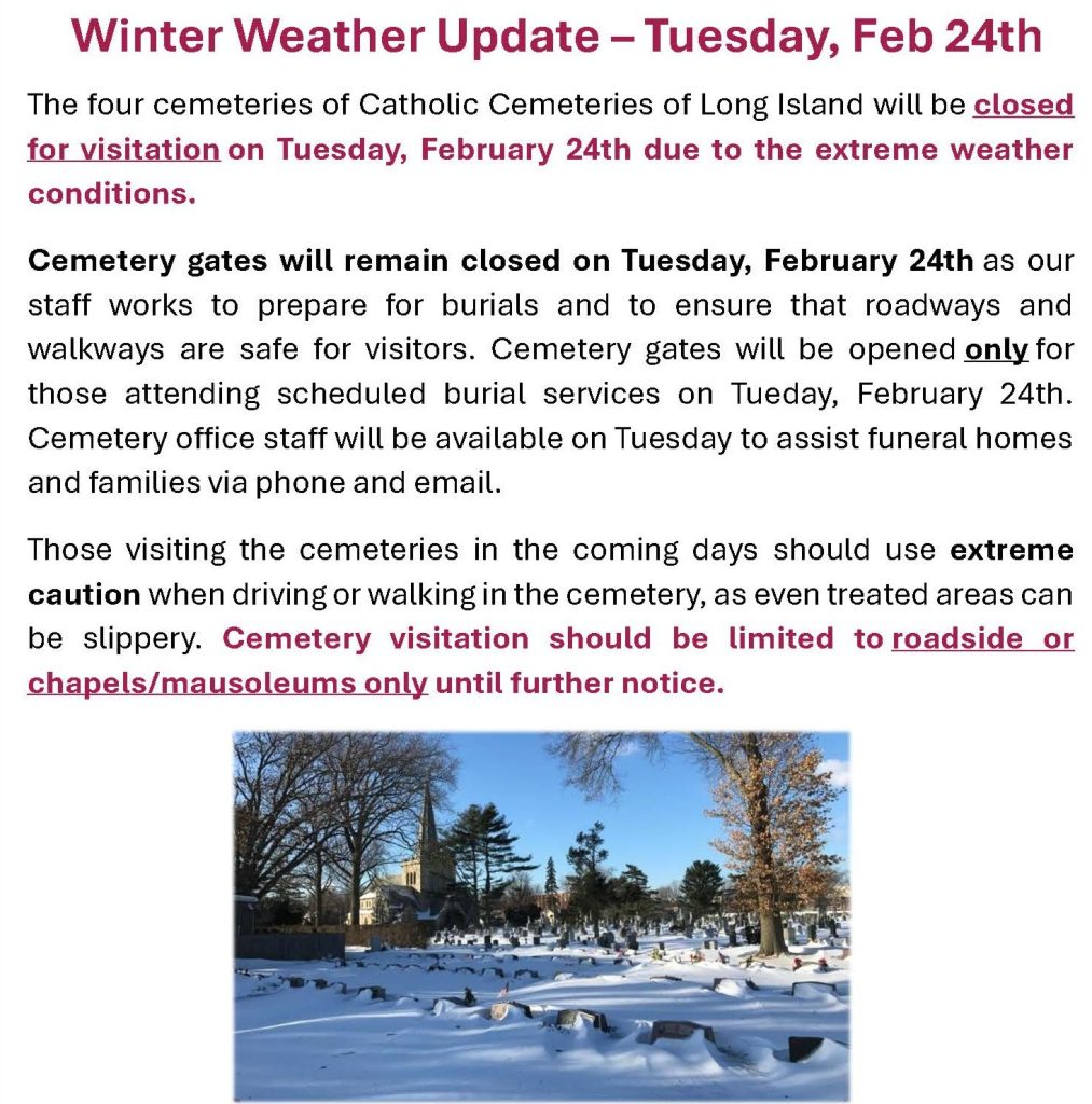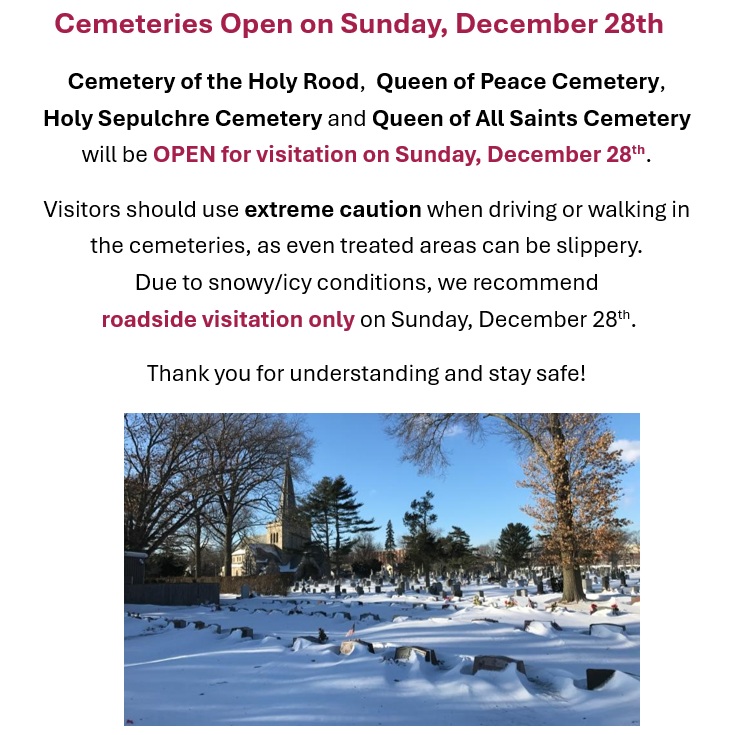 *Note: Cemetery gates may remain closed during unsafe weather conditions